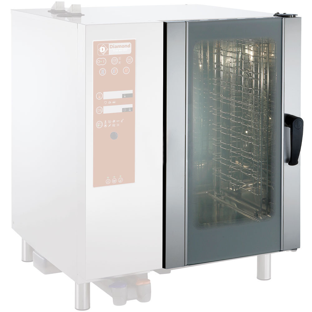 La porte à charnières à gauche Optional de Diamond est conçue pour s’intégrer parfaitement aux fours professionnels des gammes 6 et 10 GN 1/1 - GN 2/1. Idéale pour les cuisines exigeantes des cafés, hôtels et restaurants, cette porte facilite l’accès aux plaques et aux préparations, tout en garantissant une manipulation fluide et ergonomique. Commandée en option avec votre four, elle s’adapte précisément aux modèles compatibles, assurant une installation sans compromis et une utilisation intuitive au quotidien.