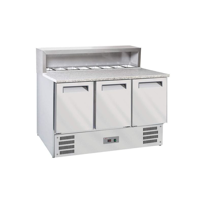 Cette table réfrigérée 3 portes GN1/1 de DIVERSO est conçue pour les professionnels exigeants de la restauration. Avec sa structure réfrigérée intégrée pour 8 bacs GN1/6-150 mm, elle allie performance et praticité pour optimiser votre espace de travail. Son gaz réfrigérant R290 écologique garantit une réfrigération efficace tout en respectant l'environnement. Parfaite pour les pizzerias, traiteurs ou restaurants, elle offre une capacité généreuse et une hygiène irréprochable grâce à ses matériaux haut de gamme et sa conception pensée pour faciliter le nettoyage.