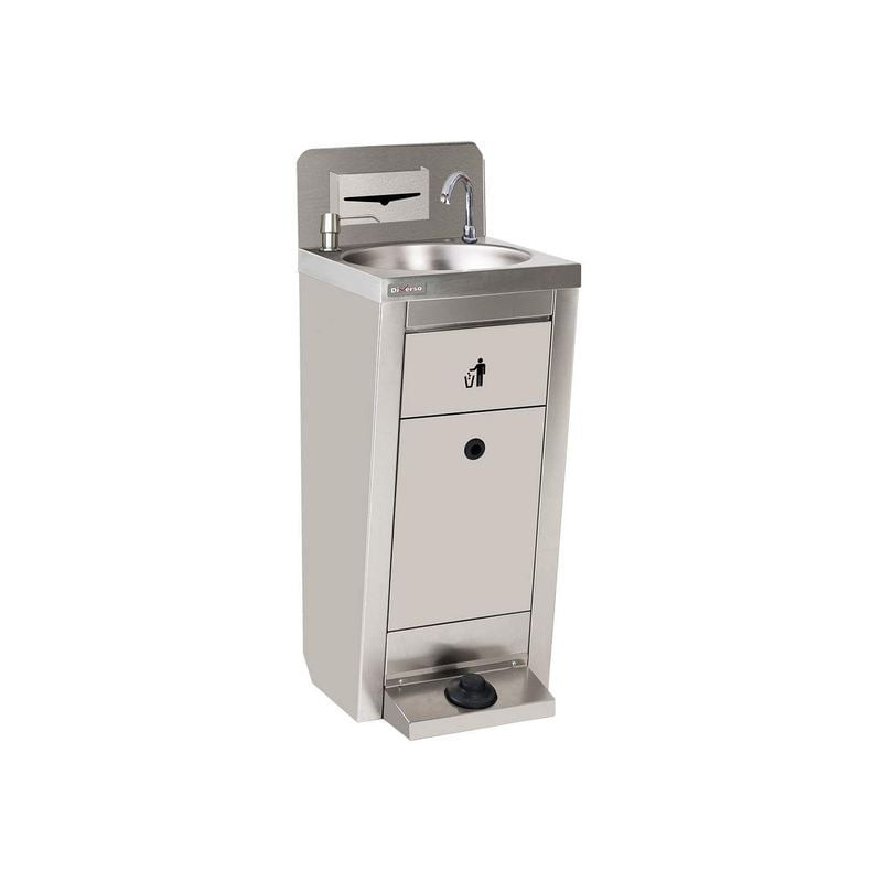 Le lave-mains sur pieds DIVERSO WR-LV41-PW est la solution idéale pour les environnements professionnels où l’accès à l’eau courante est limité. Conçu pour une utilisation autonome, il intègre une cuve ronde en acier inoxydable AISI 304 de 350 mm de diamètre, garantissant robustesse et facilité d’entretien. Son système de trappe basculante permet un accès rapide à la poubelle intégrée, tandis que son socle dissimule deux bidons de 10 litres (eau propre et eaux usées), livrés de série. Parfait pour les chantiers, ateliers ou espaces temporaires, il allie praticité et conformité aux normes CE, sans compromis sur l’hygiène.