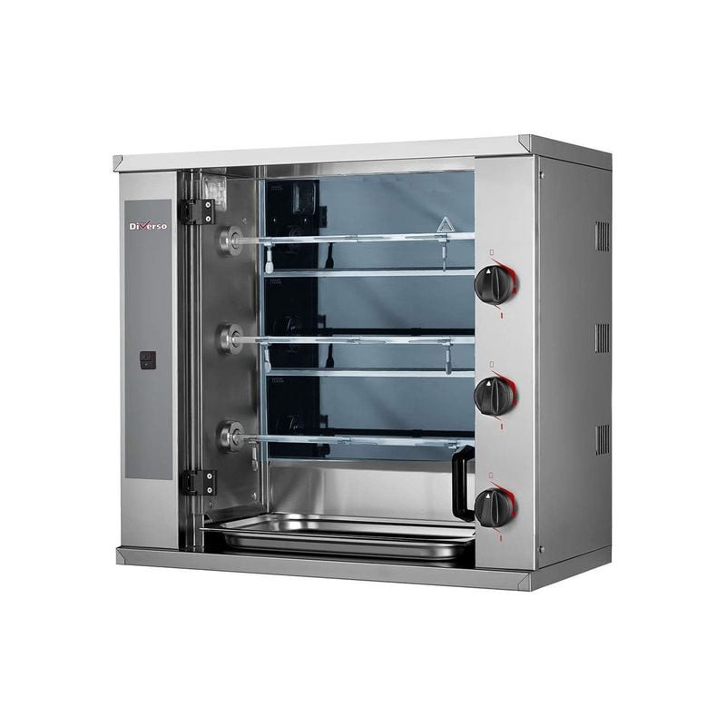 Découvrez la rôtissoire à poulets vitrocéramique SMALL de DIVERSO, conçue pour les professionnels exigeants de la restauration. Cet appareil électrique à poser allie robustesse et performance pour une cuisson homogène et savoureuse de jusqu’à 9 poulets simultanément. Avec ses 3 broches indépendantes, il s’adapte parfaitement aux besoins des traiteurs, boucheries-charcuteries et restaurants, offrant une productivité optimale sans compromis sur la qualité. Son design compact et son matériau en acier inoxydable AISI 304 garantissent une durabilité à toute épreuve et une hygiène irréprochable.