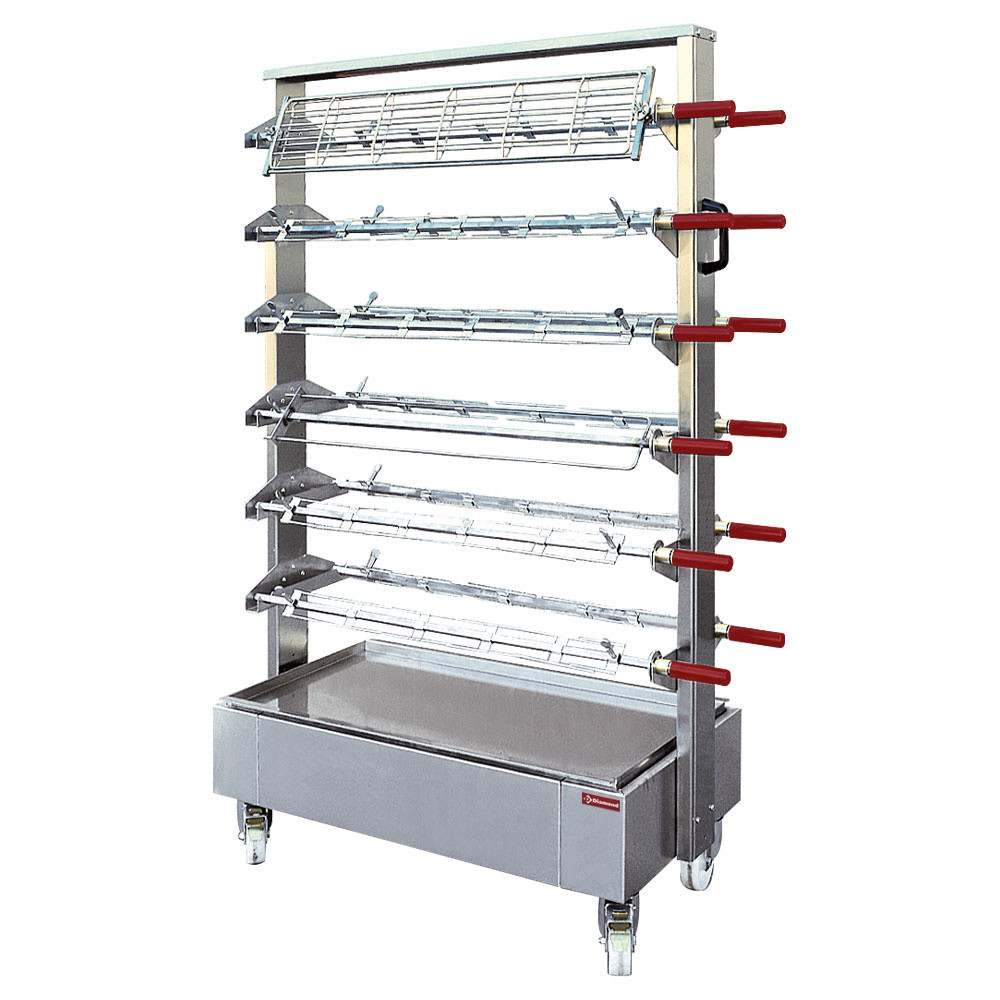 Ce chariot est spécialement adapté aux broches rôtissoires de la gamme Diamond, notamment les modèles Chicken Line Plus, Broches et EL.Vitrocéramique. Sa conception intelligente permet un rangement ordonné et accessible, facilitant la préparation et le nettoyage. Que ce soit pour une utilisation en restaurant, en traiteur ou en atelier, il s’adapte à vos besoins tout en optimisant votre espace de travail. Une solution pensée pour les professionnels qui recherchent performance et praticité.