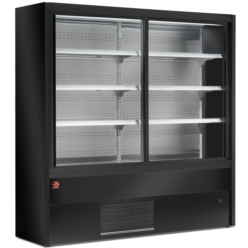 Le murale réfrigéré ventilé DIAMOND PD10/B5-R2C est l'équipement idéal pour les commerces souhaitant allier performance de conservation et attractivité visuelle. Conçu pour les produits frais comme les sandwiches, les produits laitiers, les fromages ou les boissons, ce modèle noir élégant s'intègre parfaitement dans les espaces de vente en libre-service. Son système de réfrigération ventilé garantit une température homogène entre 0° et +2°C, préservant la fraîcheur et la qualité des aliments tout en respectant les normes d'hygiène les plus strictes. Avec son groupe compresseur intégré et son fluide frigorigène R290 écologique, il offre une solution à la fois performante et durable pour les professionnels exigeants.