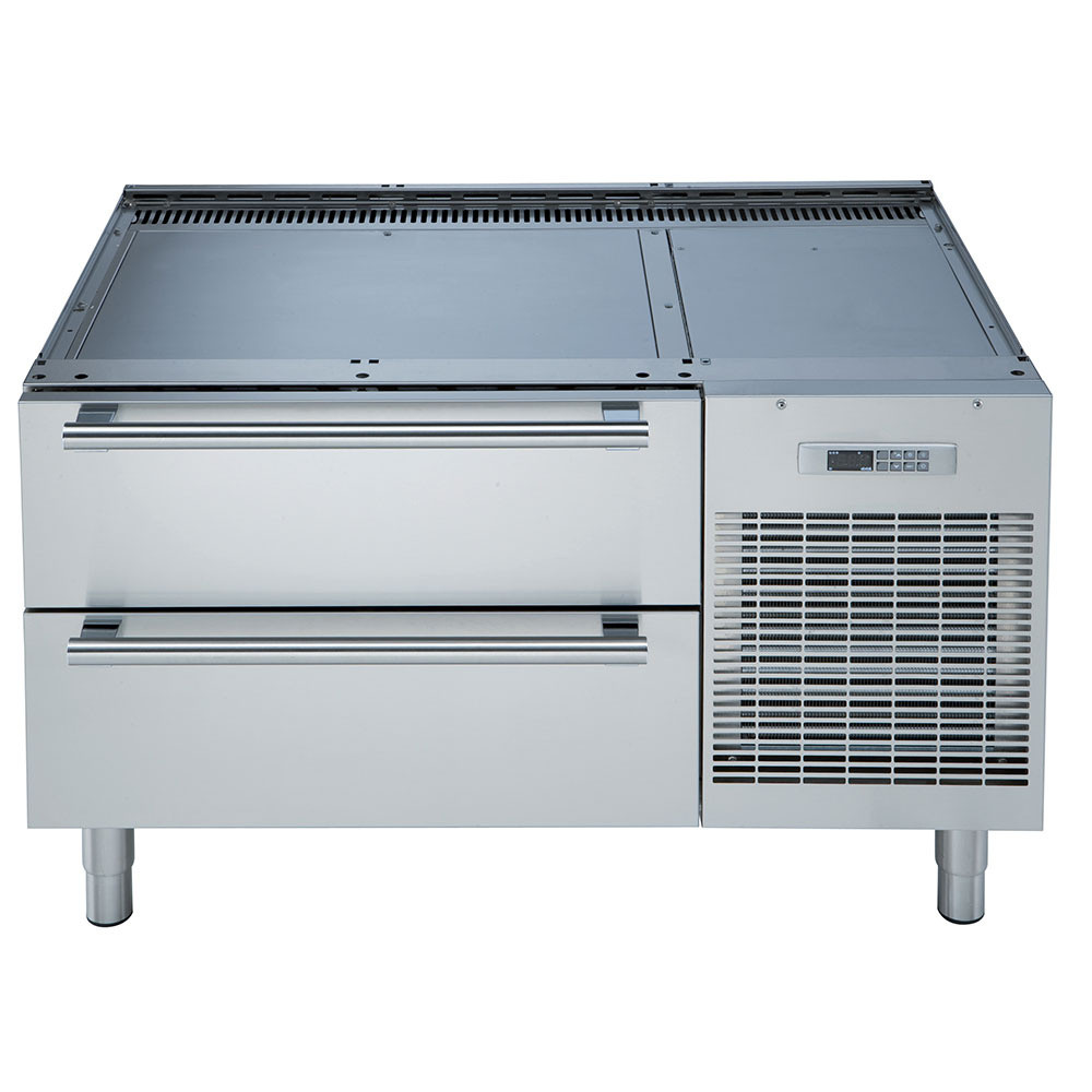 Avec ses deux tiroirs sur glissières télescopiques, ce soubassement facilite l’accès aux denrées tout en optimisant l’organisation. Les pieds réglables en inox assurent une stabilité parfaite, même sur des sols irréguliers, tandis que le bac de récupération des condensats intégré évite les risques de fuites et simplifie l’entretien. Son poids de 161 kg et sa construction en acier inoxydable en font un équipement stable et résistant, conçu pour supporter les contraintes des cuisines professionnelles au quotidien.