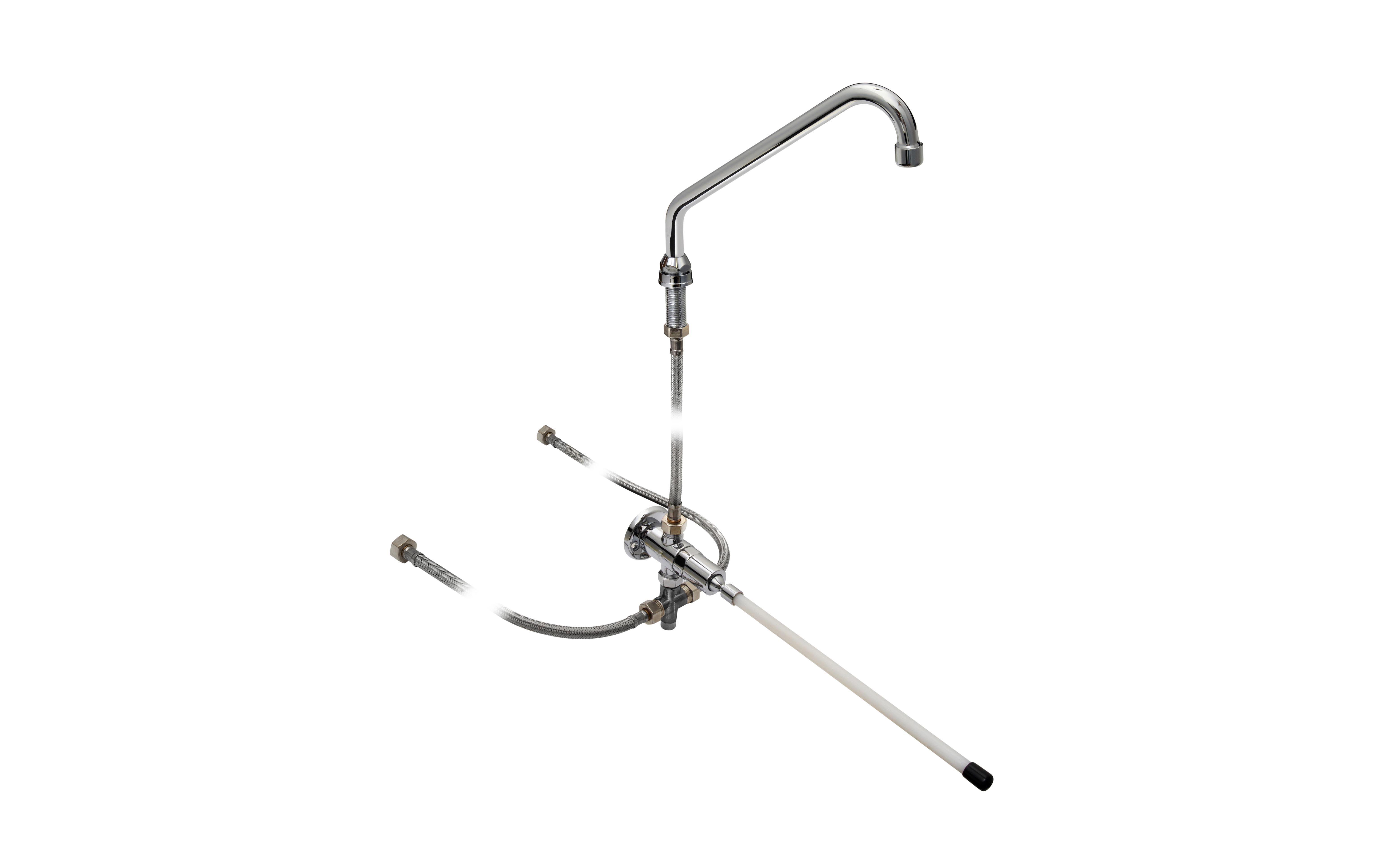 Le mitigeur est actionné par une commande fémorale (pédale au genou), permettant un contrôle sans contact des mains.
