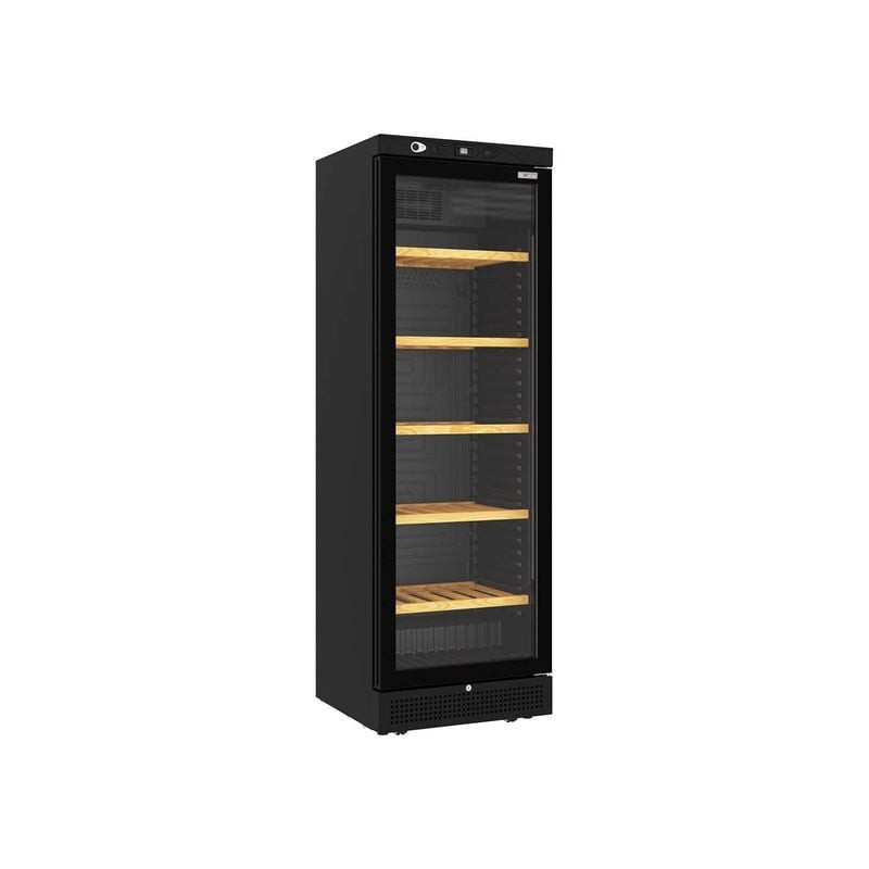 Avec ses lignes épurées et sa finition noire, cette vitrine s’intègre harmonieusement dans tout type d’environnement, des restaurants gastronomiques aux bars à vin. Ses dimensions compactes (600 x 618 x 1863 mm) permettent une installation flexible, tandis que sa porte réversible offre une adaptabilité maximale. Conçue pour un usage professionnel intensif, elle répond aux normes les plus strictes en matière d’isolation et de sécurité, tout en valorisant votre offre grâce à une présentation élégante et soignée.