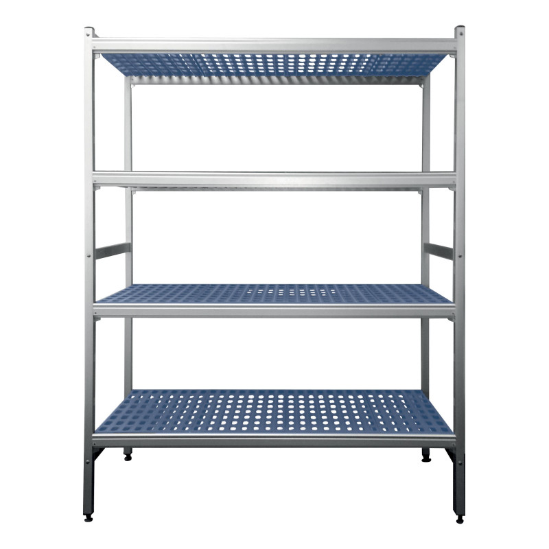 Fabriqué en aluminium anodisé tubulaire, ce rayonnage garantit une résistance à la corrosion et une longévité exceptionnelle, même dans des conditions humides ou froides. Les montants de 30 x 30 mm assurent une stabilité optimale, tandis que les clayettes en polypropylène ajouré supportent jusqu’à 30 kg chacune, avec une charge maximale de 90 kg par niveau. Les vérins de réglage (±15 mm) permettent d’ajuster la hauteur avec précision, offrant une flexibilité adaptée aux besoins spécifiques de chaque installation. Une solution idéale pour les professionnels recherchant un équipement fiable et pérenne.
