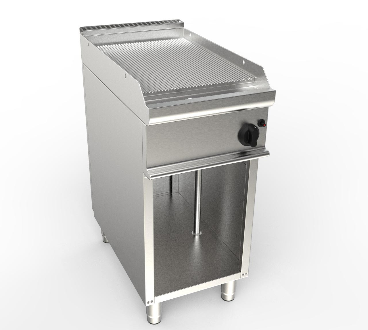 Ce fry-top à gaz nervurée sur placard ouvert est conçu pour les cuisines professionnelles où performance et durabilité sont essentielles. Avec sa plaque en acier inoxydable AISI 304 de 15 mm d’épaisseur, il offre une répartition homogène de la chaleur, idéale pour saisir, griller ou cuire en grande quantité. Sa zone de cuisson de 400 x 530 mm permet de travailler efficacement, tandis que les rebords anti-éclaboussures et la goulotte frontale facilitent l’entretien et maintiennent un environnement de travail propre. Parfait pour les restaurants, brasseries ou collectivités, il allie robustesse et simplicité d’utilisation.