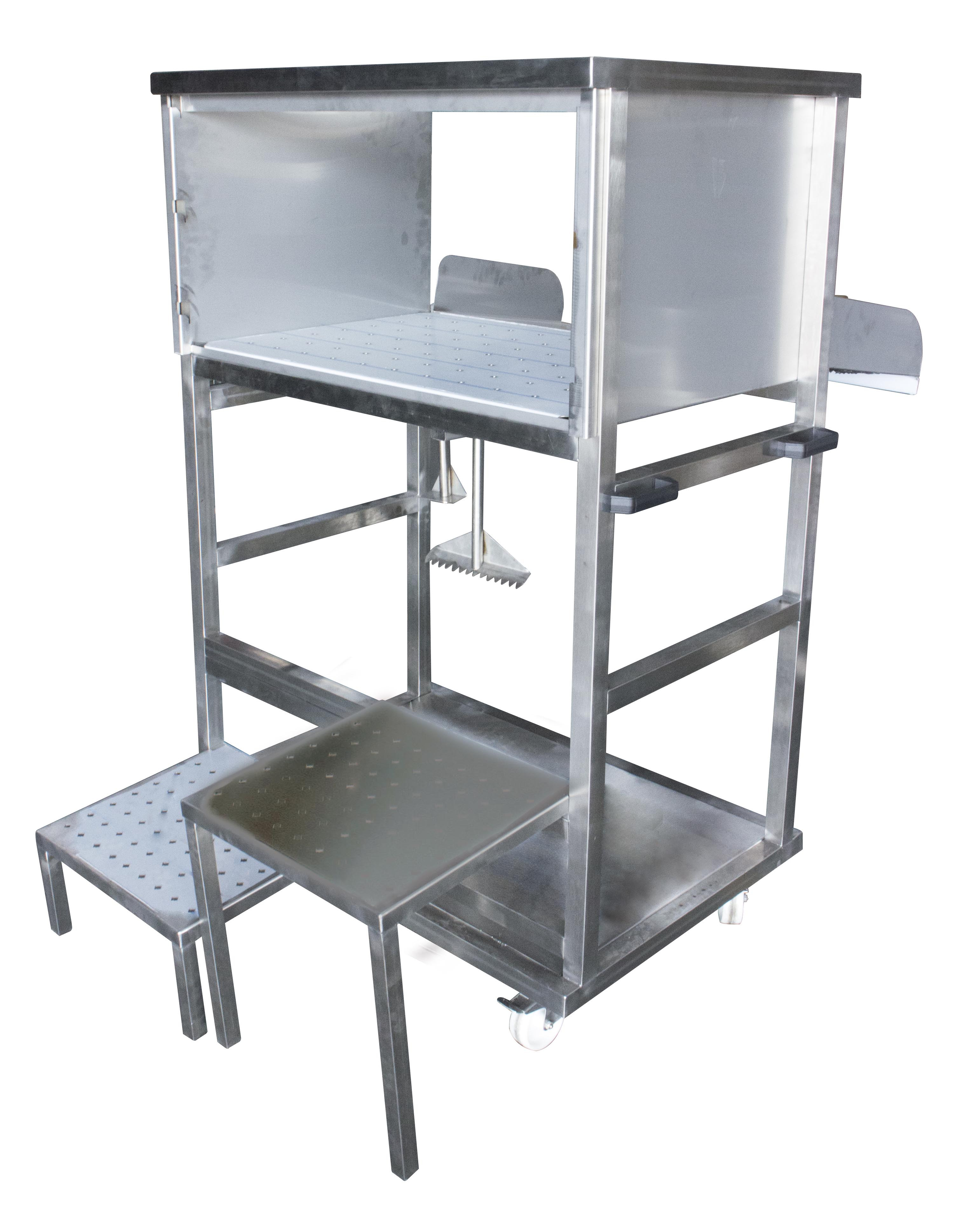 Fabriqué entièrement en inox AISI 304 d’une épaisseur de 15/10e, ce chargeur à glace allie résistance et durabilité. Son capot avant à trois positions permet un vidage pratique de la glace, que ce soit vers l’avant ou l’arrière, tandis que le marche-pied rabattable en inox (320 mm de hauteur) offre un accès ergonomique. Les poignées latérales et la hauteur de chargement à 1000 mm simplifient la manipulation, réduisant ainsi la fatigue des utilisateurs. Un design pensé pour les environnements professionnels où l’hygiène et la solidité sont primordiales.