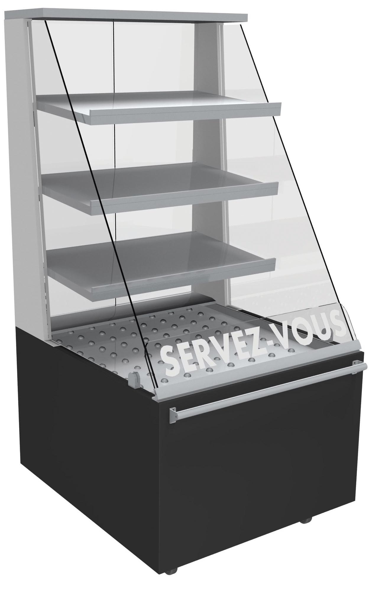 La TOUR DE PRÉSENTATION POULETS LS de L2G est conçue pour les professionnels de la restauration et des points de vente cherchant à mettre en valeur leurs poulets rôtis tout en optimisant l’espace et l’hygiène. Avec une capacité allant jusqu’à 36 poulets, répartis sur 3 étagères chauffantes et éclairantes de 500 mm de profondeur, cette vitrine allie esthétique et fonctionnalité. Son design sobre en noir RAL 9005, associé à des finitions inox, s’intègre parfaitement dans les environnements exigeants comme les traiteurs, supermarchés ou restaurants. Un autocollant "Servez-vous" est fourni pour encourager la vente en libre-service, simplifiant ainsi l’expérience client.
