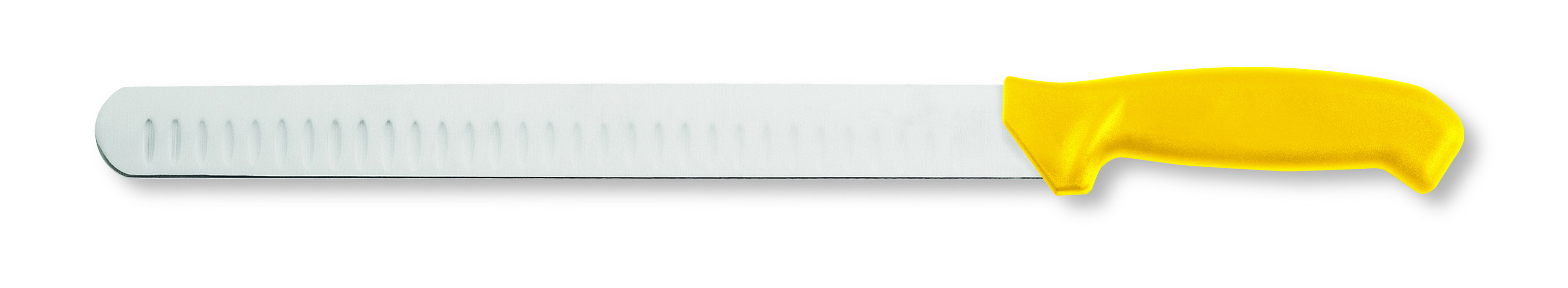 Le couteau à lame à ogives L-300 mm de L2G est l'outil indispensable pour les professionnels de la boucherie et de la restauration. Conçu pour la préparation des viandes, sa lame en acier inoxydable de 300 mm assure une découpe nette et précise, idéale pour les pièces de grande taille. Son manche ergonomique en polypropylène jaune offre une prise en main confortable et sécurisée, réduisant la fatigue lors d'une utilisation intensive. Parfaitement adapté aux cuisines professionnelles, ce couteau allie robustesse et performance pour répondre aux exigences les plus strictes.