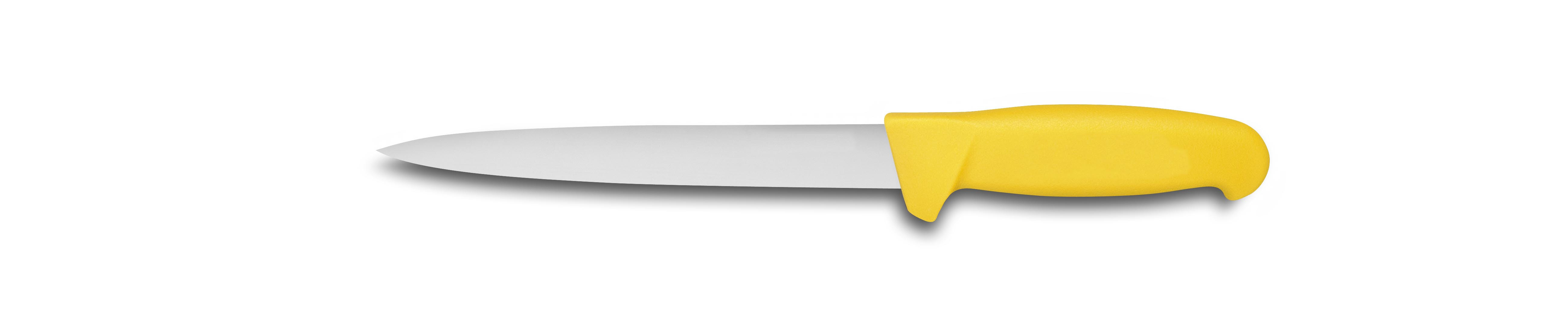 Le couteau à dénerver L2G est l'outil indispensable pour les professionnels de la boucherie et de la préparation alimentaire. Avec sa lame en inox de 200 mm, il permet d'éliminer les nerfs avec une précision remarquable, tout en garantissant une hygiène irréprochable. Conçu pour les environnements exigeants des cafés, hôtels et restaurants (CHR), ce couteau allie robustesse et ergonomie pour un travail fluide et sans effort. Son manche jaune moulé assure une prise en main optimale, même dans des conditions humides ou grasses.