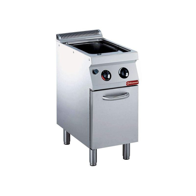Le cuiseur à pâtes gaz DIAMOND de la série Maxima 700 est conçu pour répondre aux exigences des cuisines professionnelles, qu’il s’agisse de restaurants, d’hôtels ou de collectivités. Avec sa cuve GN 1/1 d’une capacité généreuse de 24,5 litres, il permet de préparer de grandes quantités de pâtes en un seul cycle, tout en garantissant une cuisson homogène et précise. Monté sur une armoire neutre fermée, il allie robustesse et praticité, avec un plan de travail en acier inox AISI 304 embouti et une cuve en AISI 316 aux angles arrondis pour faciliter le nettoyage et assurer une hygiène irréprochable.