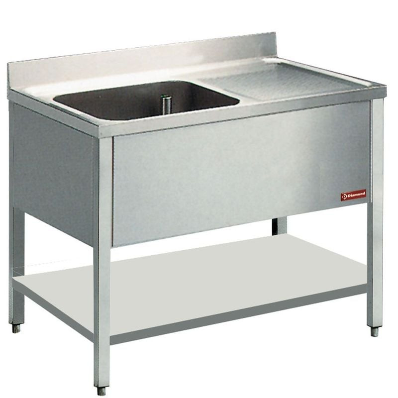 La plonge DIAMOND L1211D/6-D est un équipement robuste et fonctionnel, pensé pour les cuisines professionnelles où l'efficacité et la durabilité sont essentielles. Fabriquée en acier inoxydable AISI 304/441 d'une épaisseur de 12/10 mm, elle allie résistance et hygiène pour un usage intensif. Avec une cuve spacieuse de 500 x 400 x 275 mm et un égouttoir intégré à droite, elle optimise l'espace tout en facilitant le lavage et l'égouttage des ustensiles. Son design ergonomique, avec une tablette inférieure et un dosseret relevé de 100 mm, en fait un outil pratique pour les professionnels de la restauration.