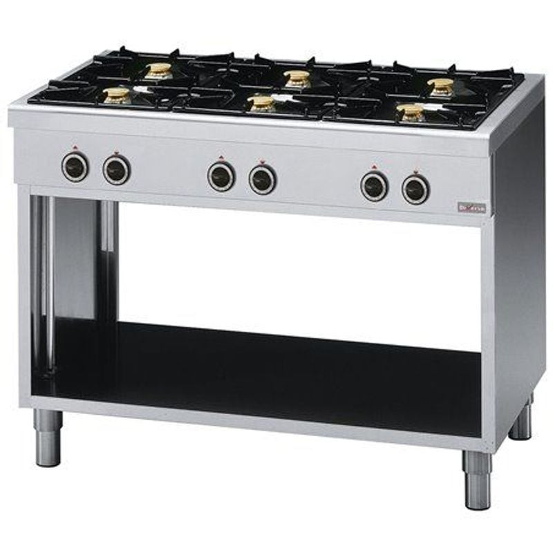 Avec ses 6 brûleurs indépendants, ce fourneau offre une flexibilité inégalée pour préparer plusieurs plats en même temps, réduisant ainsi les temps d'attente et augmentant la productivité. L'armoire inférieure ouverte, pratique et accessible, permet de ranger ustensiles et ingrédients à portée de main, optimisant l'espace de travail. Les pieds réglables en inox s'adaptent à toutes les surfaces, assurant une stabilité parfaite même sur des sols irréguliers. Un équipement indispensable pour les professionnels qui recherchent efficacité et performance au quotidien.