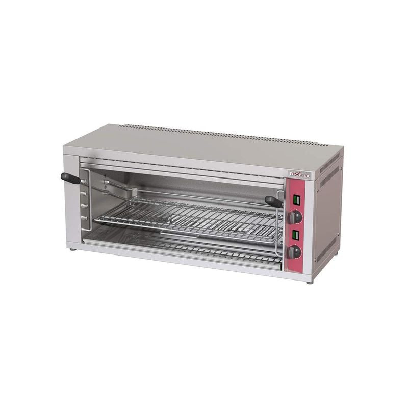 La salamandre électrique DIVERSO est l'alliée indispensable des cuisines commerciales exigeantes. Conçue pour griller, gratiner ou finir vos plats avec une précision optimale, elle allie puissance et ergonomie pour répondre aux besoins des professionnels de la restauration. Son système de chauffage par résistance blindée en acier inoxydable "Incoloy" garantit une diffusion homogène de la chaleur, tandis que sa grille en acier chromé de 645 x 310 mm offre une surface généreuse pour traiter plusieurs préparations simultanément. Idéale pour les brasseries, restaurants ou traiteurs, elle s'intègre parfaitement dans les espaces où rapidité et qualité sont primordiales.