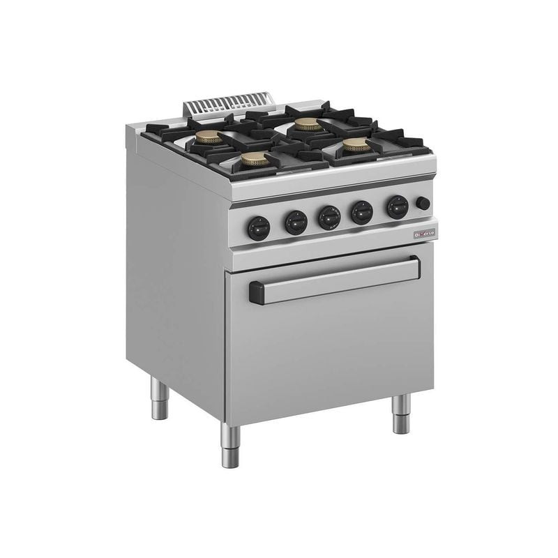 Le fourneau à gaz DIVERSO WR-G4BF-F1 est conçu pour répondre aux exigences des cuisines professionnelles, alliant performance et flexibilité. Équipé de quatre brûleurs à feux vifs haute efficacité (4 x 5,5 kW), il garantit une répartition homogène de la chaleur pour une cuisson précise et rapide. Son plateau embouti et ses brûleurs en fonte traitée, associés à des couronnes en laiton, assurent une durabilité exceptionnelle et un rendement énergétique optimal. Idéal pour les restaurants, cantines ou traiteurs, ce modèle s’adapte à toutes les préparations, des plus simples aux plus élaborées.