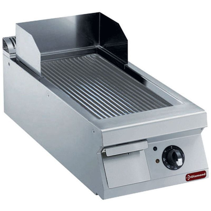 La plaque de cuisson électrique à nervures DIAMOND TOP est conçue pour les professionnels exigeants, alliant robustesse et performance. Avec sa surface de cuisson généreuse de 23,10 dm² (330 x 700 mm), elle permet de préparer simultanément plusieurs plats, idéale pour les restaurants, snacks ou traiteurs. Son thermostat réglable de 120°C à 280°C offre une précision optimale pour griller, saisir ou cuire en douceur, tandis que sa conception monobloc garantit une hygiène irréprochable et un entretien simplifié.