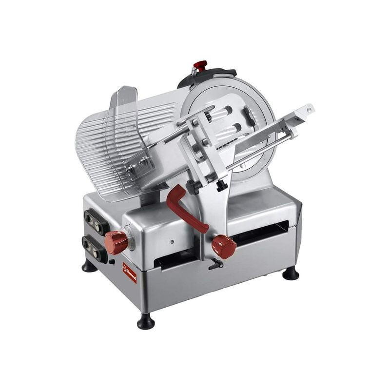 La trancheuse professionnelle Diamond 350/AVV est l'outil idéal pour les boucheries, charcuteries, fromageries et grandes surfaces. Conçue pour trancher jambon, saucisson, viande crue, fromage et bien d'autres produits, elle allie robustesse et performance. Son mouvement de chariot automatique à vitesse variable permet une utilisation fluide et adaptée à chaque type de produit, tout en offrant la possibilité d'un fonctionnement manuel. Avec une lame oblique de 350 mm et une capacité de coupe généreuse, elle répond aux exigences des professionnels les plus exigeants.