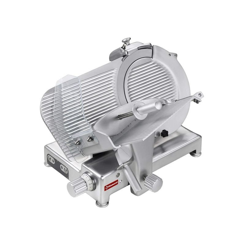La trancheuse professionnelle DIAMOND 350 mm est conçue pour répondre aux exigences des environnements à haut débit comme les grandes surfaces et les commerces alimentaires. Avec sa lame oblique allemande de 350 mm, inclinée à 35°, elle garantit des tranches parfaites, régulières et sans effort. Son système à gravité optimise la productivité tout en assurant une manipulation intuitive. Robuste et élégante, cette machine allie performance et durabilité pour une utilisation intensive, idéale pour trancher viandes, fromages et charcuteries en toute simplicité.