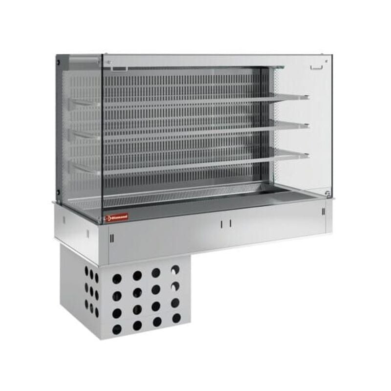 La vitrine murale DIAMOND est conçue pour les professionnels exigeants de la restauration et de l'hôtellerie. Avec son design élégant et fonctionnel, elle allie esthétique et performance pour mettre en valeur vos préparations tout en garantissant une conservation optimale. Son système de réfrigération ventilé assure une répartition homogène du froid sur les trois niveaux, évitant les variations de température. Parfaite pour les buffets, les traiteurs ou les restaurants, elle s'intègre harmonieusement dans tous les espaces grâce à son format compact et son acier inoxydable AISI 304 résistant et facile à entretenir.