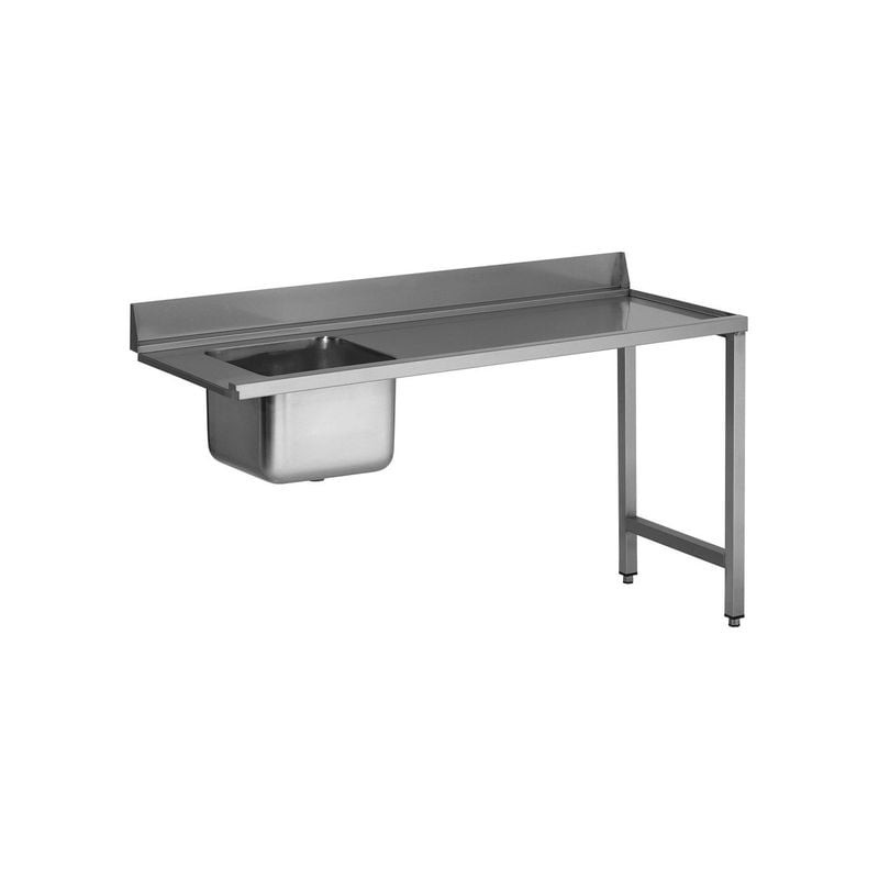 La table d'entrée L2G est conçue pour s'intégrer parfaitement aux lave-vaisselles professionnels, offrant une solution ergonomique et fonctionnelle pour les cuisines collectives et les établissements exigeants. Avec son design adossé et sa plage de travail spacieuse, elle facilite la préparation et le rinçage des paniers avant lavage. Entièrement réalisée en inox AISI 304 de 15/10 mm d'épaisseur, cette table allie résistance et durabilité, tout en répondant aux normes d'hygiène les plus strictes. Son installation à gauche du lave-vaisselle, avec accrochage à droite, permet une circulation fluide des paniers, optimisant ainsi le flux de travail en cuisine.