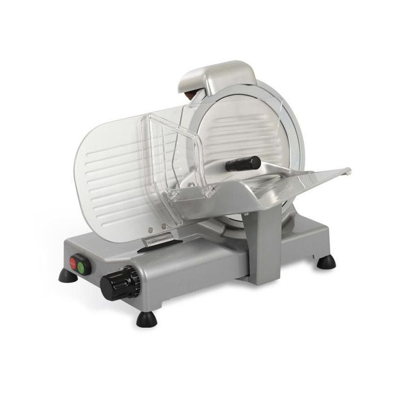 Ce trancheur se distingue par sa structure en aluminium anodisé, résistante à la corrosion et facile à nettoyer, un atout majeur pour les environnements où l’hygiène est primordiale. Le protecteur de lame et le chariot mobile, également en aluminium, assurent une durabilité optimale tout en facilitant les manipulations. L’arbre porte-lame monté sur palier à billes double réduit les frottements et prolonge la durée de vie de l’appareil. Son design compact (505 x 410 x 375 mm) permet une intégration aisée dans les espaces de travail, même les plus restreints.